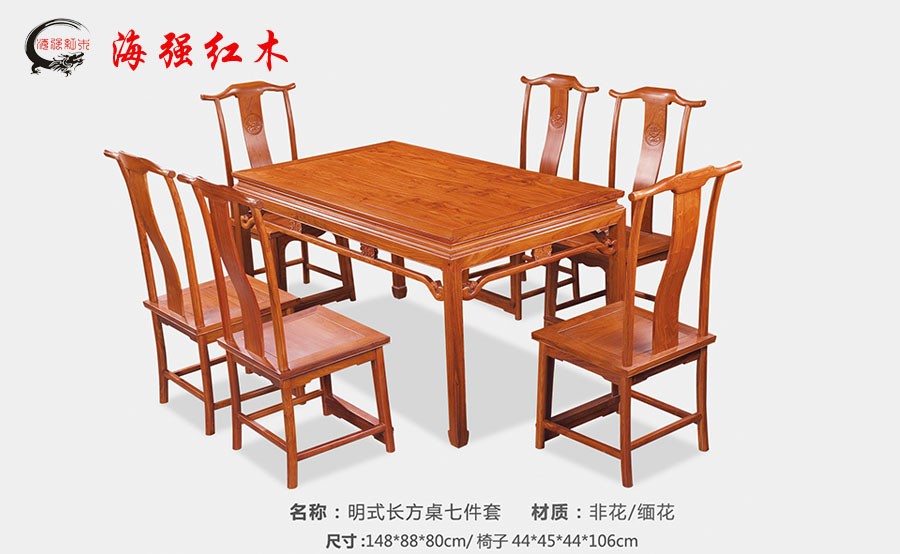 名稱:明式長方形餐桌 七件套