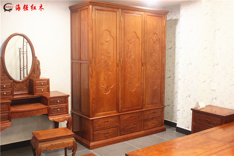 衣柜門上雕刻花鳥圖。(另外還有雕刻山水圖,和素面沒有雕刻的供您選擇)更多衣柜請點(diǎn)擊這里