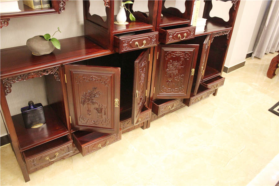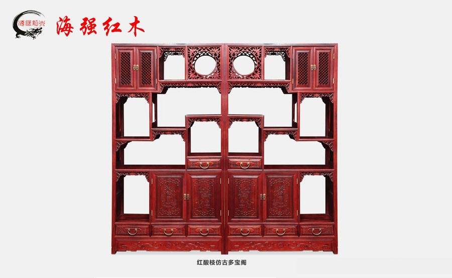 多寶格又稱“百寶格”或“博古格”,是專用于陳設(shè)古玩器物的。它是進(jìn)入清代才興起,并十分流行的家具品種。多寶閣可以呈現(xiàn)出高低錯落的視覺效果,很是通透。
